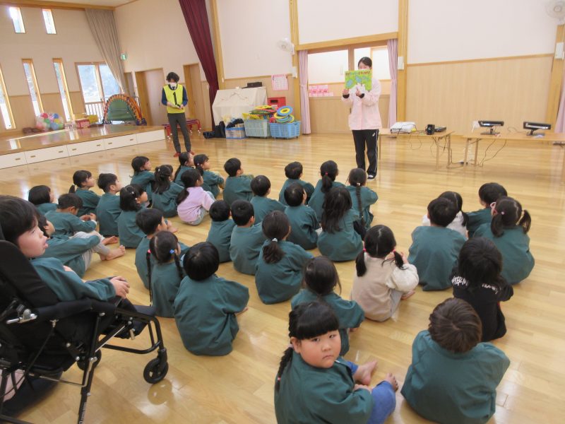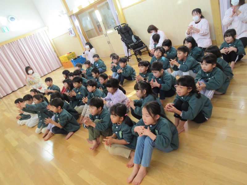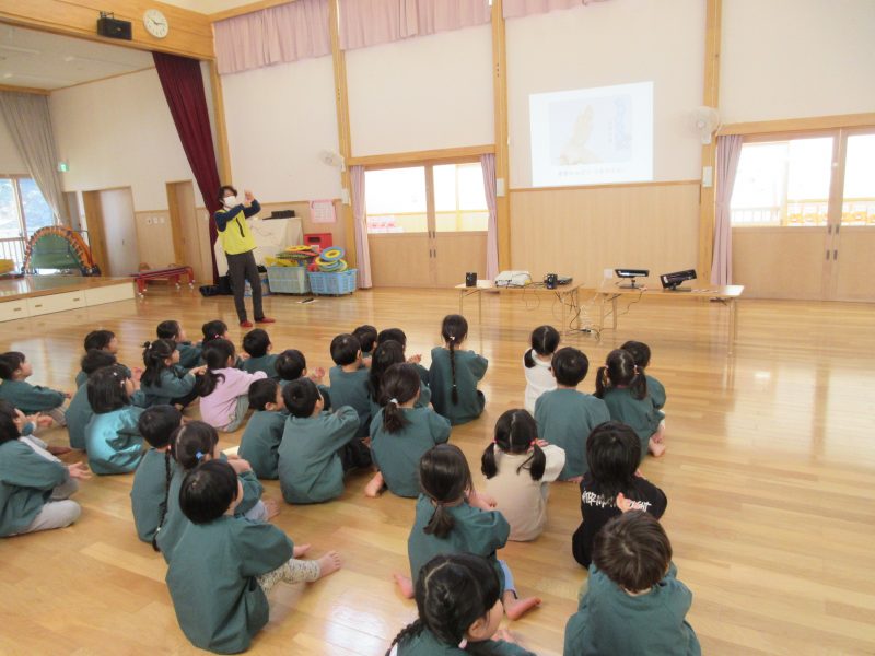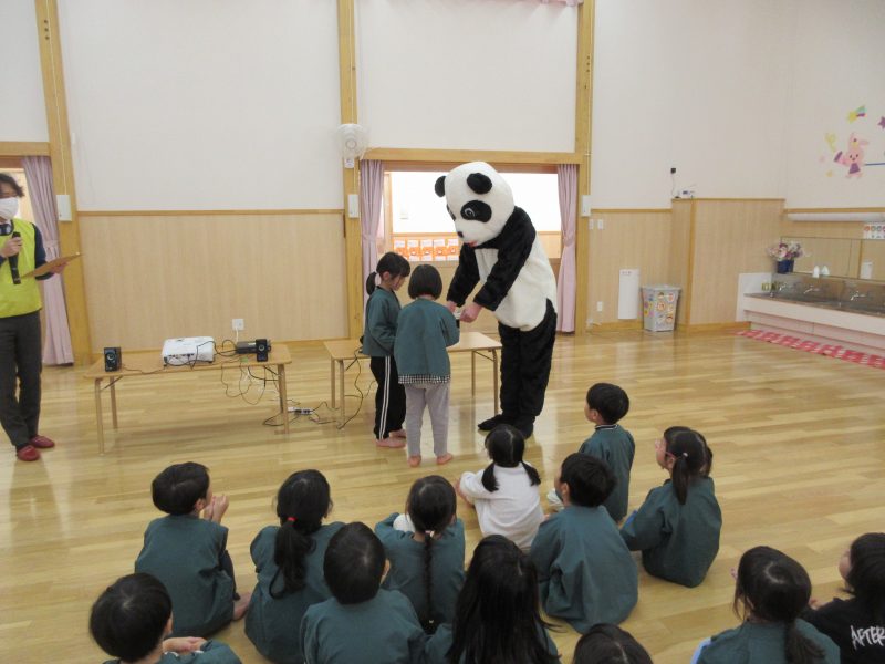 1月16日(金)に手洗い教室がありました。ぞう・ぱんだ・こあら組の子どもたちが参加し、「かぜヒッキーをやっつけろ😲」の紙芝居を見たり、着ぐるみパンダくんと一緒に『てあらいのうた』の映像を見ながら、手の洗い方をお勉強しました!