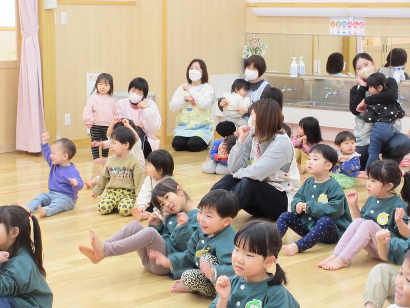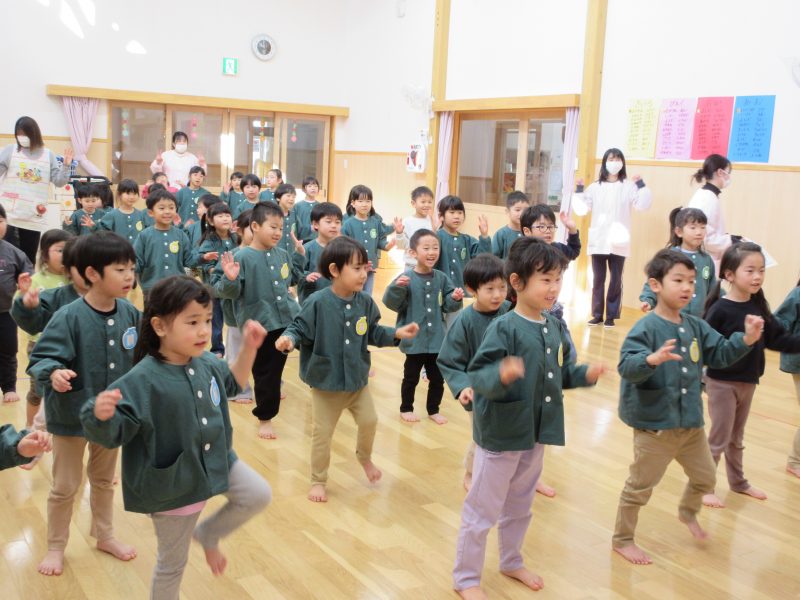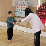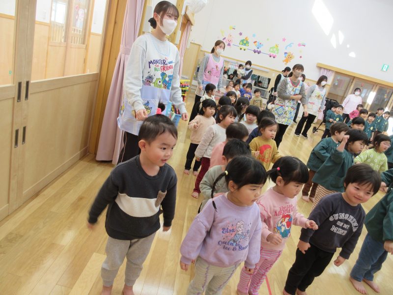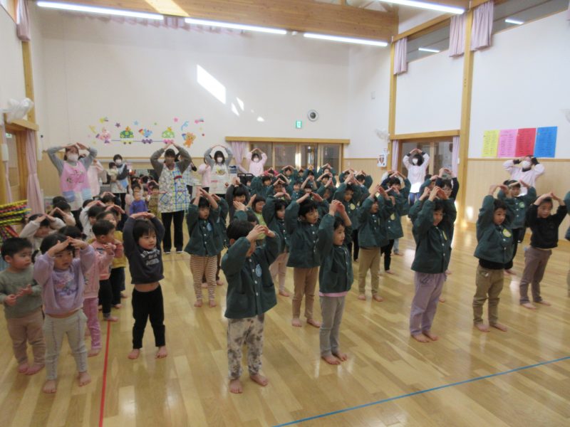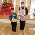 2月13日(金) 今日の集会では、季節の歌「ゆき」を歌ったり、体操したりした後に、ウオロクに出した4,5歳児の絵画の表彰式をしました。