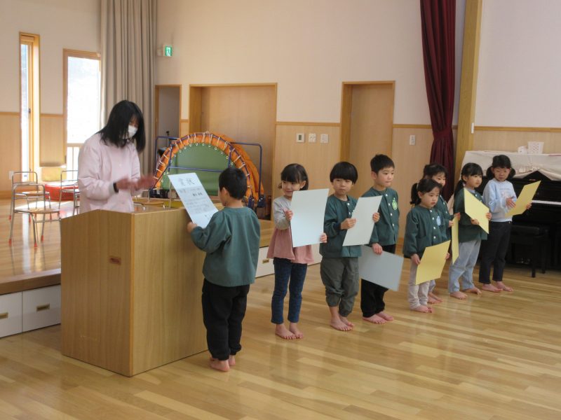 3月6日(金) 新潟県児童生徒絵画・版画コンクールで金賞、銀賞になったお友だちの表彰式をしました。名前を呼ばれて、ちょっぴり恥ずかしそうにしながらも、「ありがとう」と喜んで受け取っていました😊