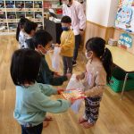 ゲームのあとはみんなが楽しみにしていた抽選会‼沢山のおもちゃの景品に「すごい‼たくさんある」「あのおもちゃほしいな~」とワクワクドキドキしていました✨おもちゃを貰った子どもたちは、とっても嬉しそうな表情でした😊