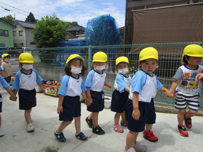 9月27日(水)に、2歳児うさぎ組のお散歩遠足がありました。あいにくの雨でしたが、園内でお散歩をしたり、ロケット作りをしたりと楽しく過ごしました。