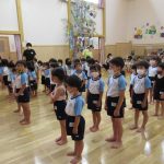 11月10日(金)に、消防署の広報活動で消防士さんが剣野保育園に来てくれました!ぞう組は、幼年消防隊として『火の怖さについて』のビデオを見ながら『火災』についてたくさんのことを教えていただきましたね。