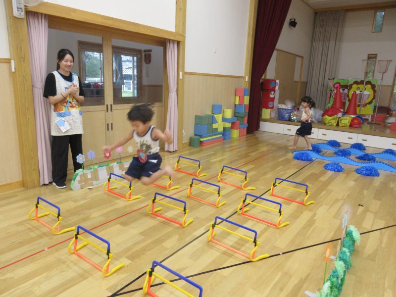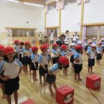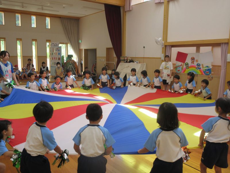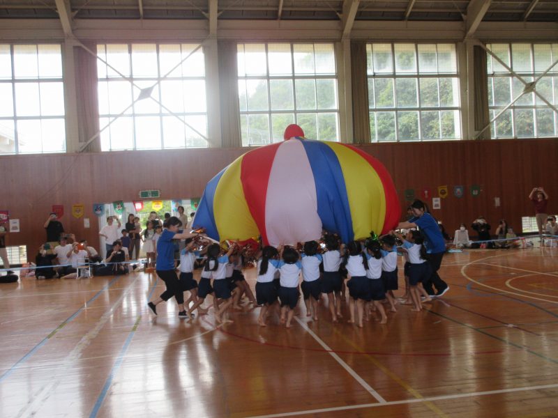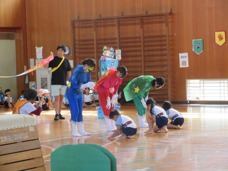 ちびっこSDGsレンジャーに変身してエコバッグを持ってお買い物をしたり、地球の平和を守るために修行をしたり、地球君と一緒に世界旅行をしたり・・・・SDGsマンと地球というワードにたくさん触れながら楽しく練習してきました。当日は、優勝目指していつも以上に真剣な表情で頑張っている姿やお家の人に見ていただき張りきる姿や、一緒に踊りを踊って嬉しそうにしている姿が見られました。令和7年度の運動会、怪我をすることなくみんなで盛り上がった運動会となりました。