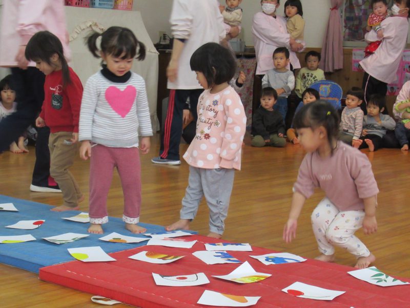 4月28日(水)に、こどもの日のお祝い会がありました。『鯉のぼり』や『かしわ餅』が出てくるお話を聞いたり、ゲームをしたりと楽しく過ごしました‼