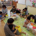 入園から2ヶ月が経とうとしています。お母さんとの離れ際に泣いていたりす組の子どもたちも、ようやく慣れて笑顔が増えました!みんなが座って、先生が読む紙芝居をじっとみられるようになりました!(^^)!