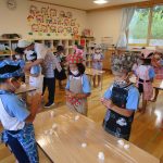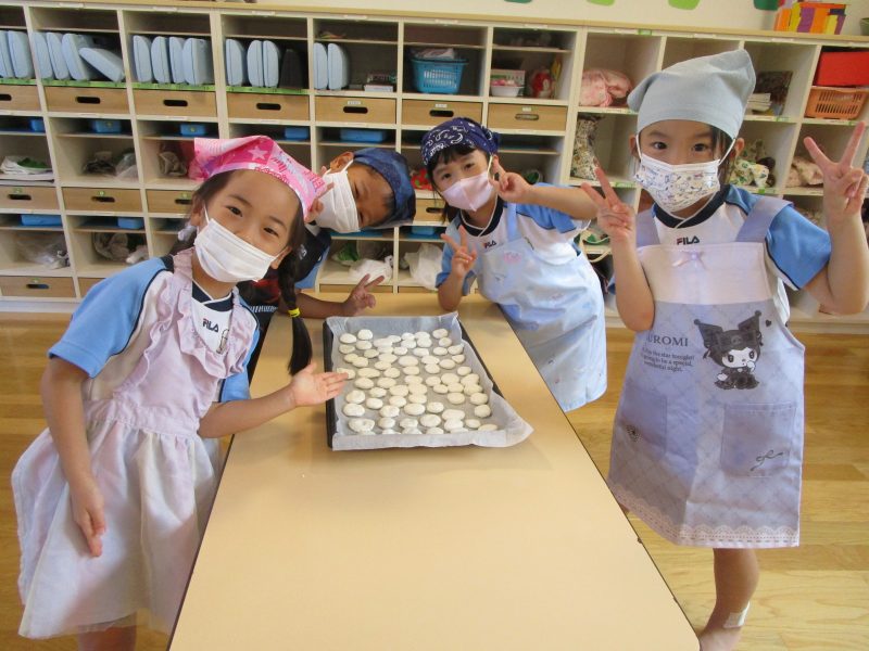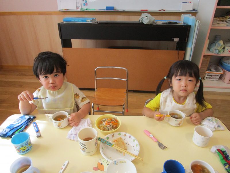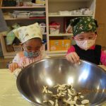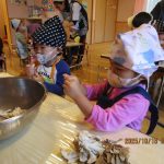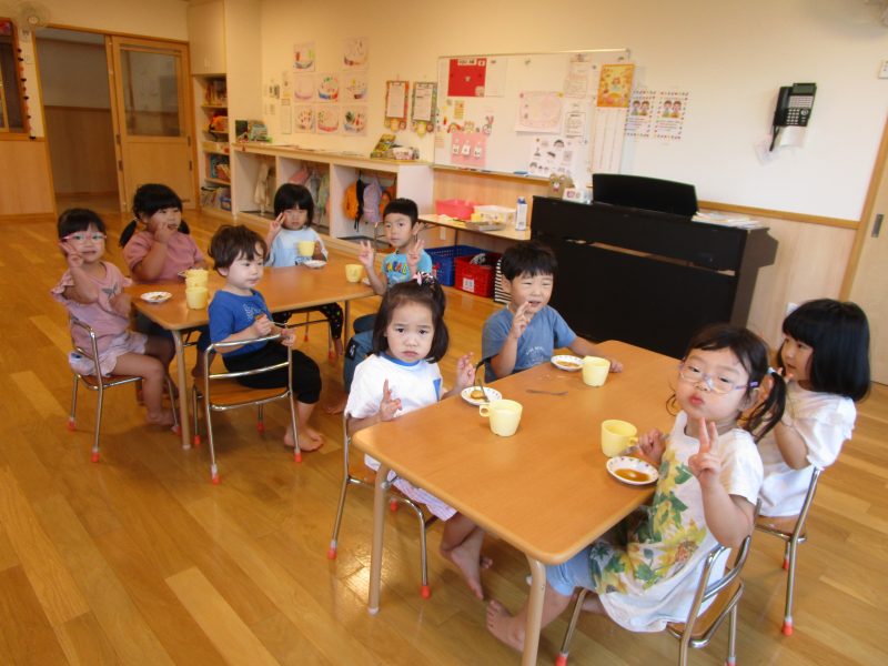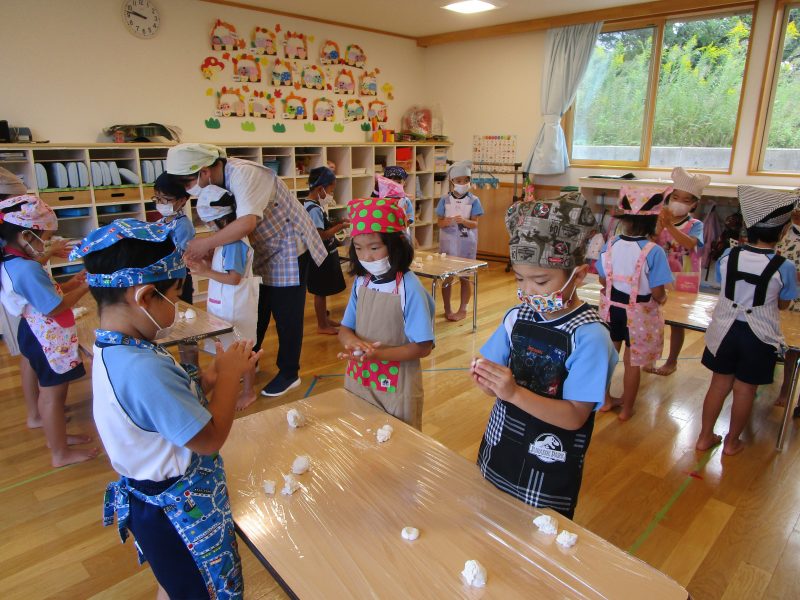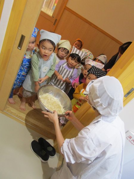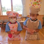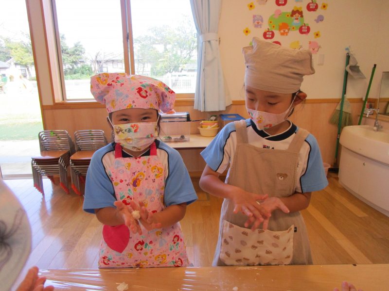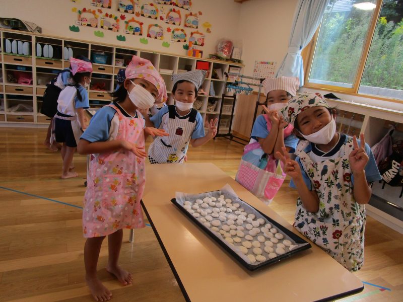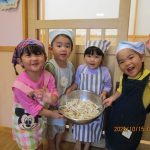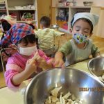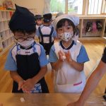 10月15日(水)にうさぎ組がきのこさきをしました🍄エリンギ、えのき、まいたけ、しめじの4種類のきのこの色や形の違いを見て早速スタート!きのこの種類によって、ちぎりやすいきのこ、ポロポロ取れるきのこ、ちぎるのが難しいきのこなどがありました😆「今日はきのこ触ってもいいの~?」「なんかちょっとくさ~い😆」「鳥の羽みたいでパタパタきのこだね~」と楽しんでいた子どもたちです🥰🍄みんながちぎってくれたきのこは、給食できのこ汁として登場!「僕のきのこあった~!」と喜んでモリモリ食べていました🍄美味しかったね😋✨そして、今回はエプロンや三角巾など、自分で畳むことにチャレンジ!「どうやってするの~?」「これでいいの~?」と頑張っていた子どもたちです😊エプロンなどの用意、ありがとうございました✨